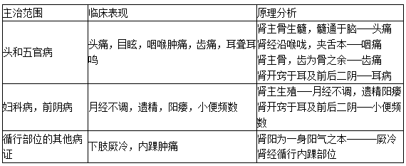 ④咯血,咽喉腫痛(腎經支脈行經咽喉,故治咽腫)