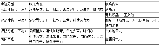 主癥:多飲,多食,多尿,形體消瘦,或尿有甜味