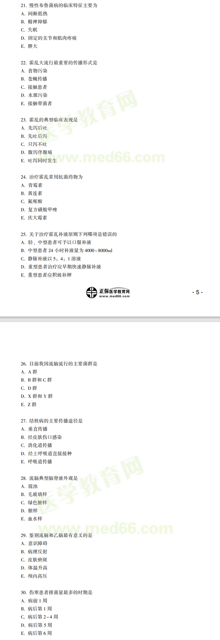 國家中醫(yī)執(zhí)業(yè)醫(yī)師綜合筆試考前測試《傳染病學(xué)》21-30