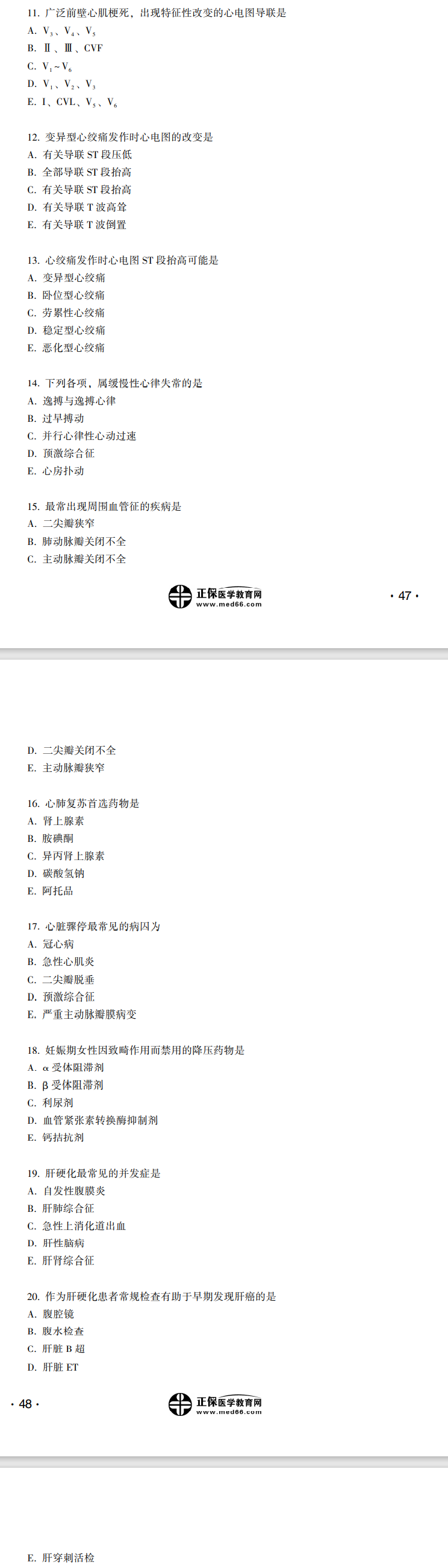 2021年國家中醫(yī)執(zhí)業(yè)醫(yī)師筆試“西醫(yī)內(nèi)科學(xué)”考前刷題(11-20)