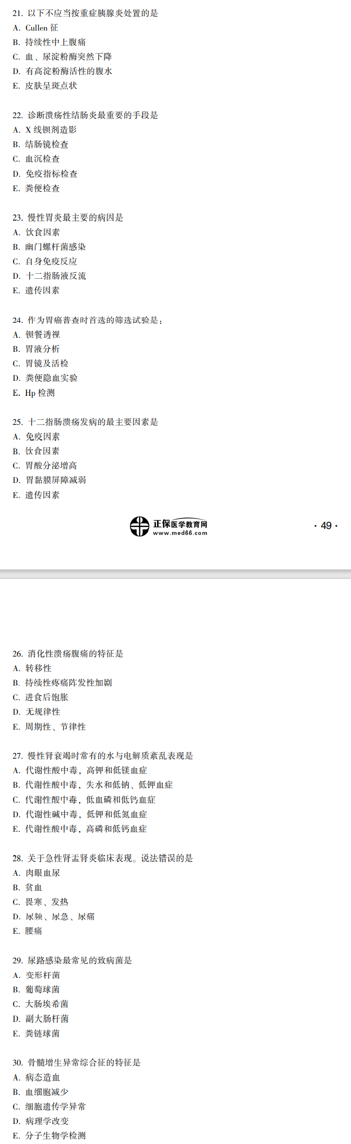 “國(guó)家中醫(yī)執(zhí)業(yè)醫(yī)師資格證考前沖刺《內(nèi)科學(xué)》(21-30)”文章醫(yī)學(xué)教育網(wǎng)小編搜集整理,更多醫(yī)考信息、備考資料、模擬試題請(qǐng)關(guān)注醫(yī)學(xué)教育網(wǎng)。