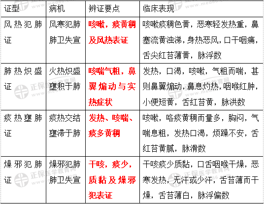 31.風寒犯肺、肺熱熾盛、痰熱壅肺、燥邪犯肺證的鑒別見下表