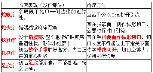知識點:手足部疔瘡的臨床表現(xiàn)及治療(重點)