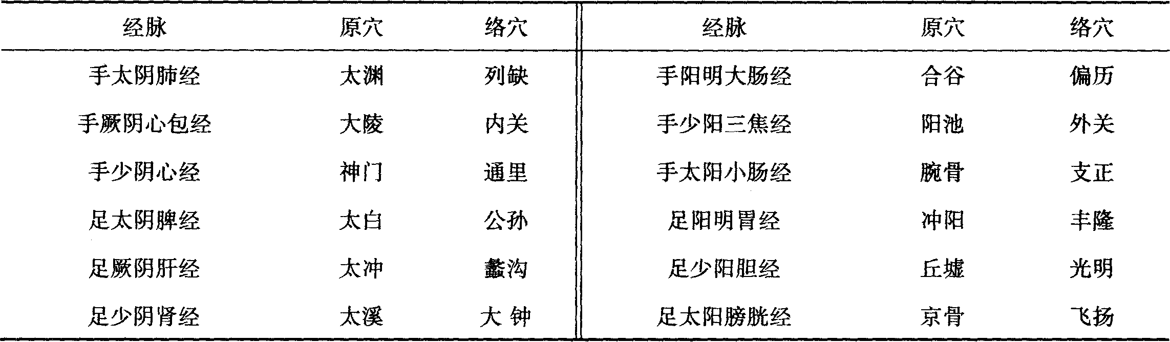 十二經(jīng)脈處穴與絡(luò)穴表