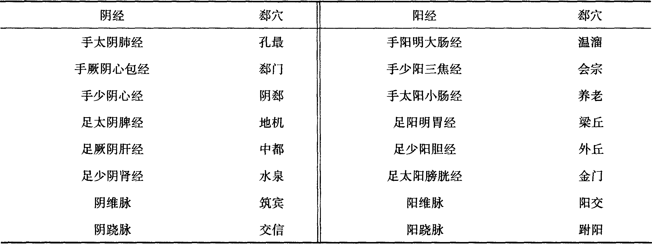 十二經(jīng)脈和奇經(jīng)八脈中的陰蹺脈、陽(yáng)蹺脈、陰維脈、陽(yáng)維脈之經(jīng)氣深聚的部位稱為郄穴。