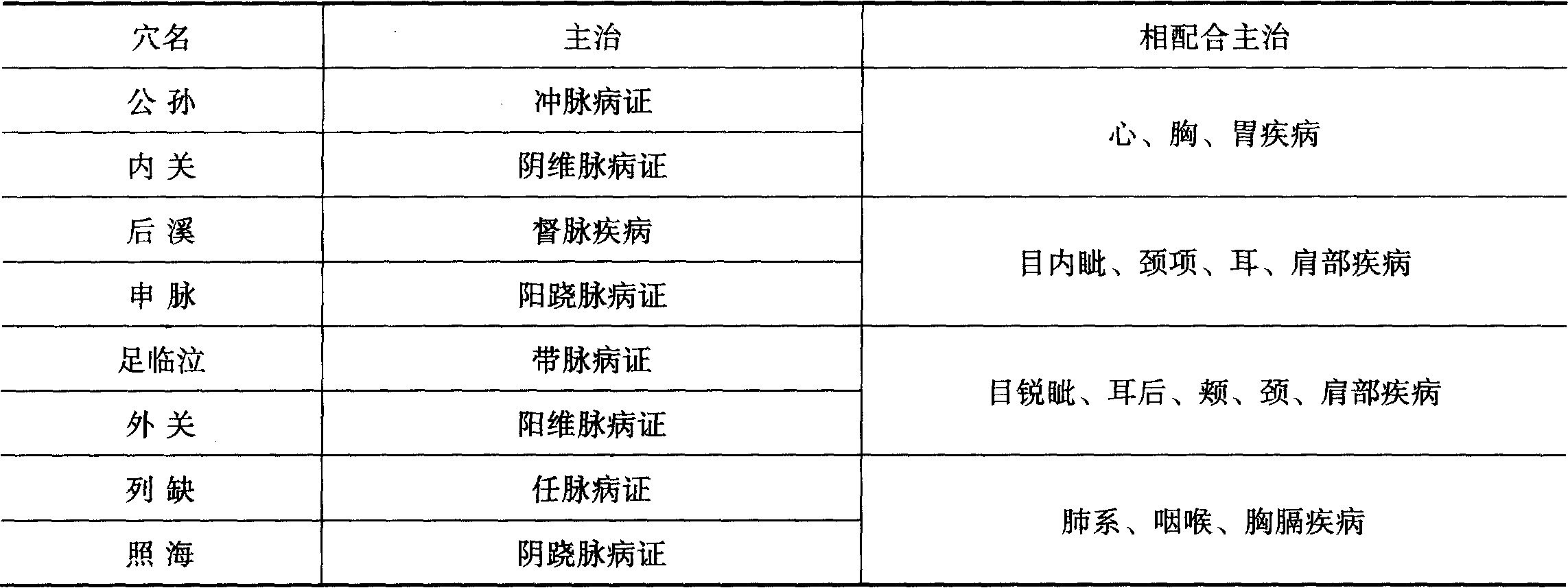 特定穴:八脈交會(huì)穴配伍及主治病證