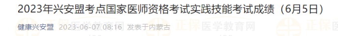 原文通知標(biāo)題:2023年興安盟考點(diǎn)國家醫(yī)師資格考試實(shí)踐技能考試成績(6月5日)