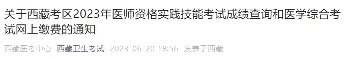 關(guān)于西藏考區(qū)2023年醫(yī)師資格實踐技能考試成績查詢和醫(yī)學(xué)綜合考試網(wǎng)上繳費的通知