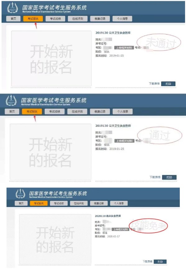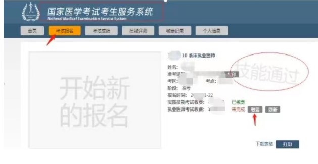 特別提醒:醫(yī)學(xué)綜合考試?yán)U費入口僅對實踐技能考試結(jié)果為“技能通過”和“技能免考”考生開放。實踐技能考試結(jié)果為“未通過”和非“技能免考”考生無此入口,請考生認(rèn)真核實技能考試結(jié)果和技能免考情況。