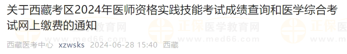 關于西藏考區(qū)2024年醫(yī)師資格實踐技能考試成績查詢和醫(yī)學綜合考試網(wǎng)上繳費的通知