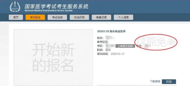 第三步:在考生個人報名界面中,點“考試報名”即可查看技能考試結(jié)果:“未通過”、“技能通過”、“技能免考”。(具體以實際界面為準)