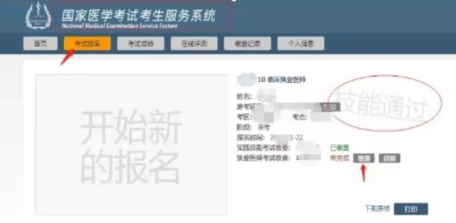 特別提醒:醫(yī)學綜合考試繳費入口僅對實踐技能考試結(jié)果為“技能通過”和“技能免考”考生開放。實踐技能考試結(jié)果為“未通過”和非“技能免考”考生無此入口,請考生認真核實技能考試結(jié)果和技能免考情況。