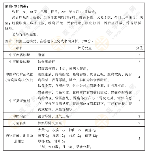 - · 2023年中醫(yī)執(zhí)業(yè)醫(yī)師實(shí)踐技能第一站病案分析【脾胃病證-腹痛】練習(xí)題