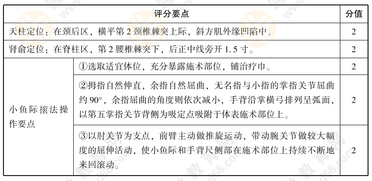 2022年中醫(yī)實(shí)踐技能考試【中醫(yī)操作】練習(xí)題06:試述天柱、腎俞穴定位,并演示小魚際滾法的操作