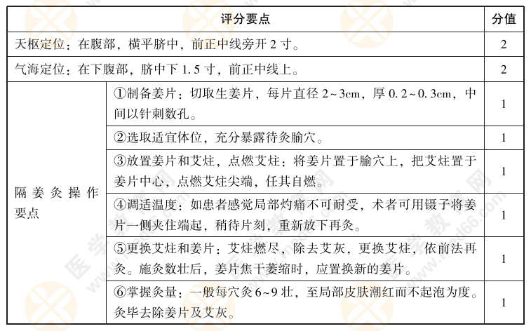 2022年中醫(yī)實(shí)踐技能【中醫(yī)操作】練習(xí)題04:試述天樞、氣海穴定位,并演示隔姜灸的操作
