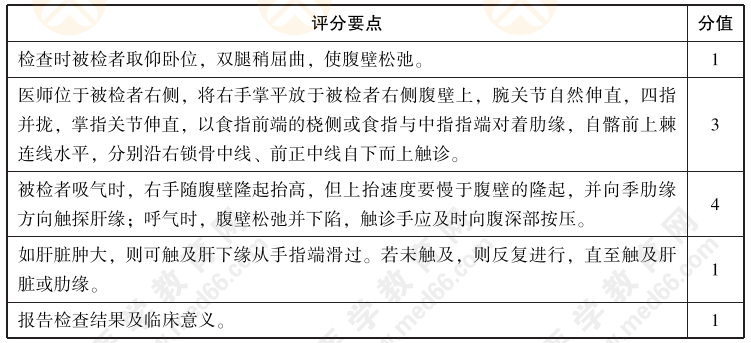 2022年中醫(yī)實(shí)踐技能考試【體格檢查】練習(xí)題04:請演示肝臟的單手觸診檢查方法