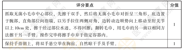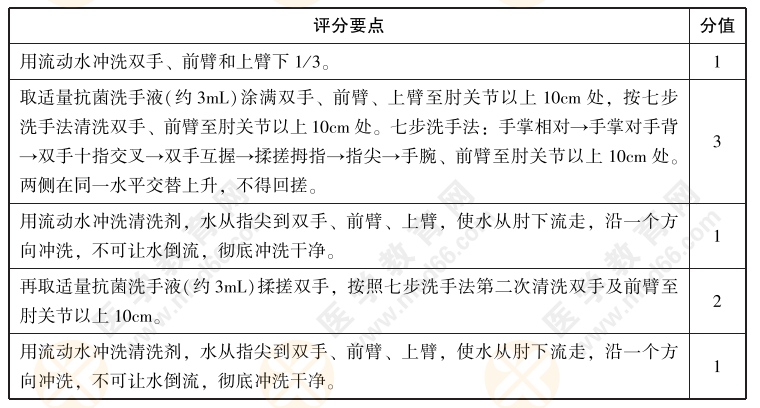 2022年中醫(yī)實踐技能考試【西醫(yī)操作】練習(xí)題01:請演示外科洗手的全過程。(10分)