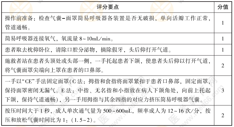 2022年中醫(yī)實(shí)踐技能考試【西醫(yī)操作】練習(xí)題04:請演示氣囊-面罩簡易呼吸器的使用方法