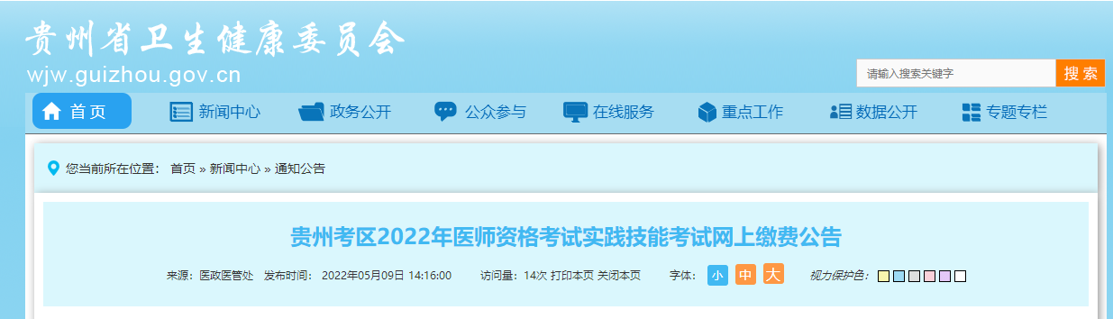 2022年全國醫(yī)師資格實(shí)踐技能考試貴州考區(qū)網(wǎng)上繳費(fèi)即日起開通?,F(xiàn)就有關(guān)事項(xiàng)公告如下: