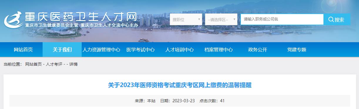 關于2023年醫(yī)師資格考試重慶考區(qū)網(wǎng)上繳費的溫馨提醒