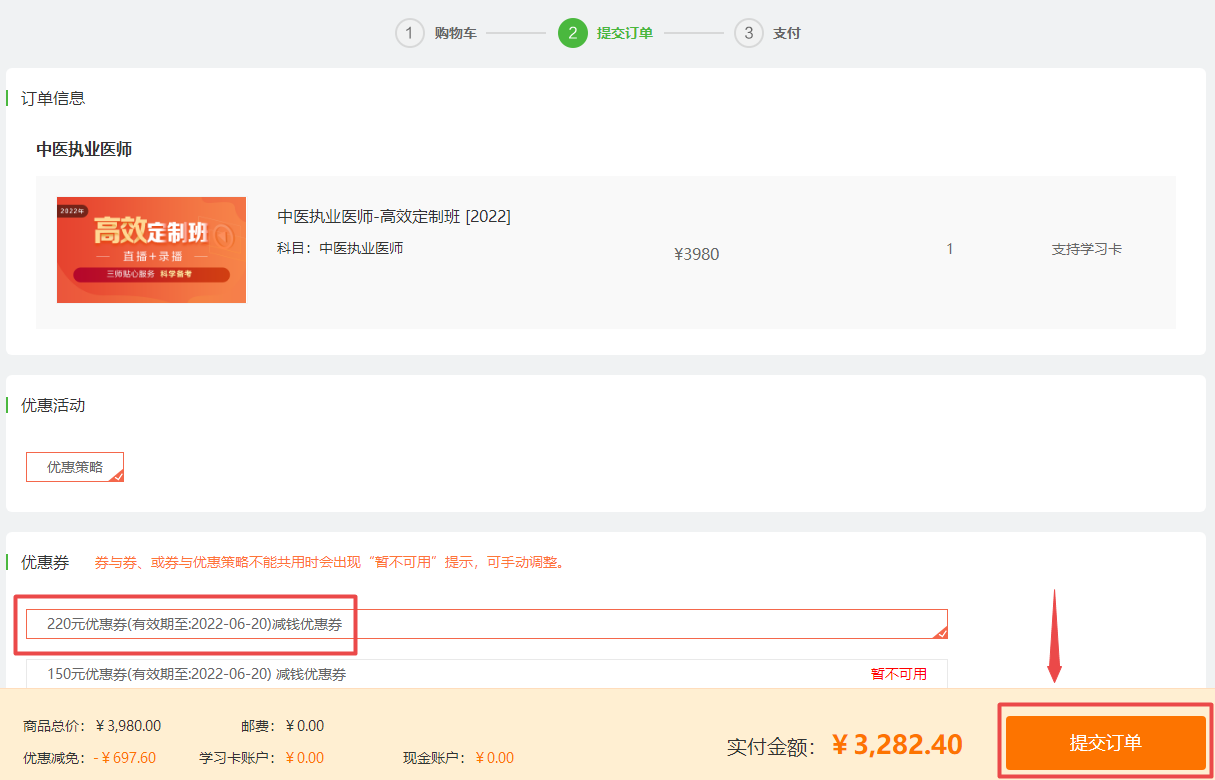 二、選課優(yōu)惠券,去下單