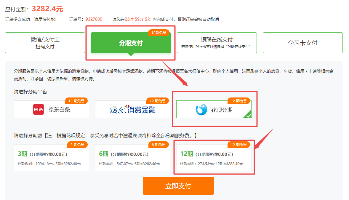 三、選擇分期支付(以花唄分期)為例
