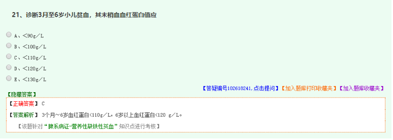 相關(guān)考點2:3個月到6歲貧血蛋白質(zhì)指標
