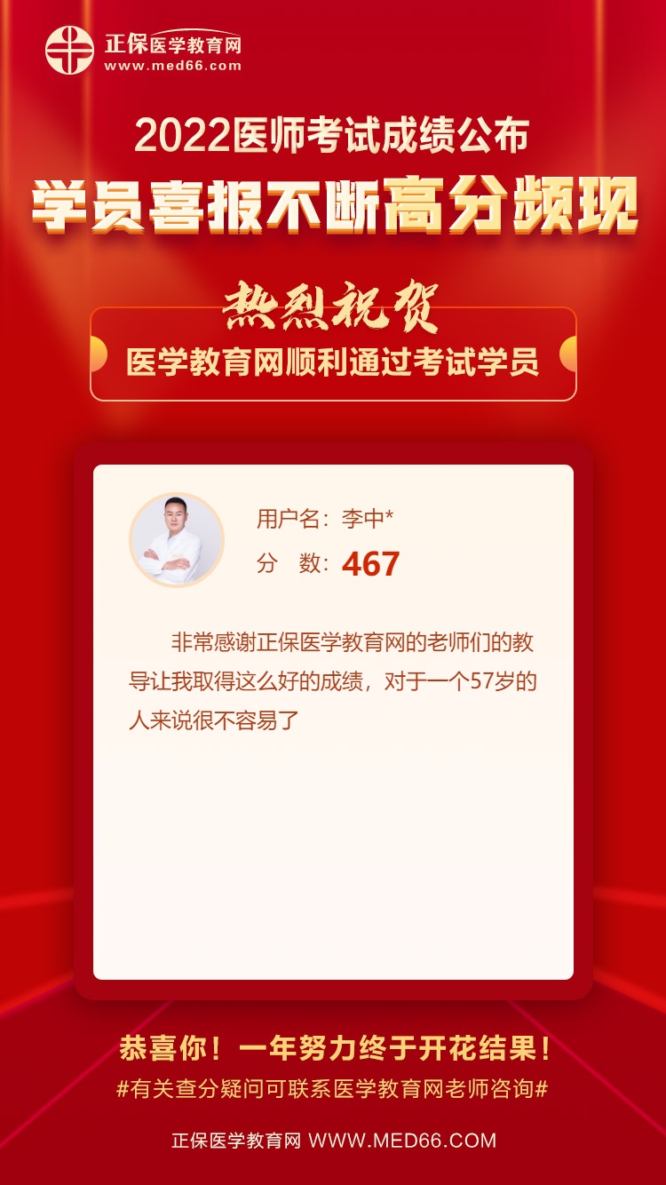 醫(yī)學(xué)教育網(wǎng)57歲考生參加2022年中醫(yī)執(zhí)業(yè)醫(yī)師考試獲得467分!