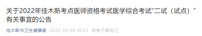 關(guān)于2022年佳木斯考點(diǎn)醫(yī)師資格考試醫(yī)學(xué)綜合考試“二試(試點(diǎn))”有關(guān)事宜的公告
