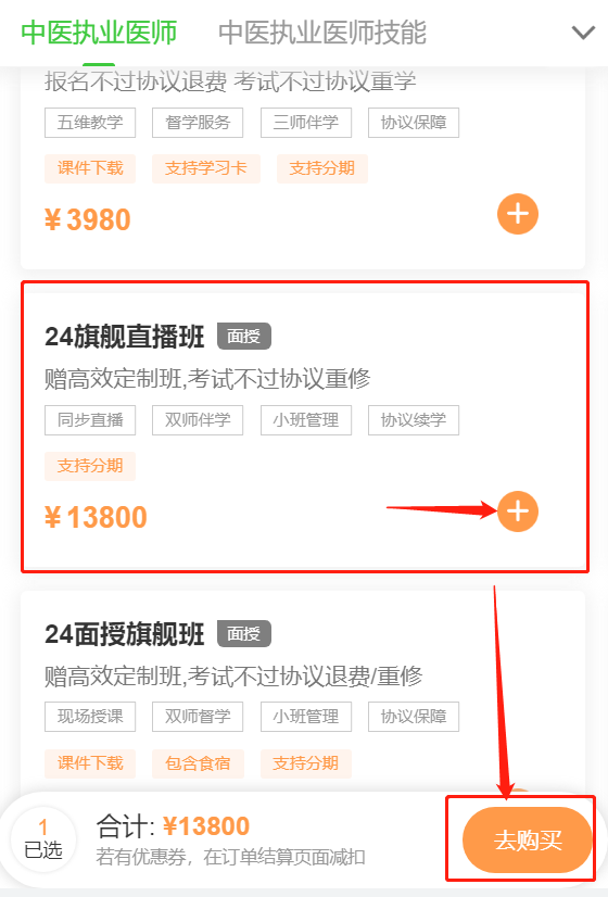 【操作流程】中醫(yī)執(zhí)業(yè)醫(yī)師移動端分期免息購課流程