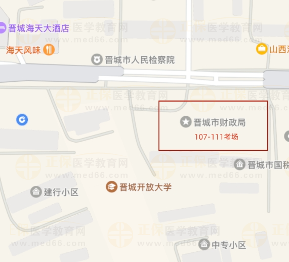 107-111考場在晉城市財政局后院小二樓,晉城市迎賓街328號,如下圖所示: