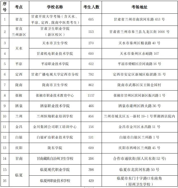 1.由于考場沖突原因,武威考點全部考生合并至張掖考點參加考試;嘉峪關(guān)考點全部考生合并至酒泉考點參加考試;天水、平?jīng)觥⒍ㄎ?、隴南中醫(yī)類別考生統(tǒng)一調(diào)至省直考點甘肅開放大學(xué)考場參加考試。