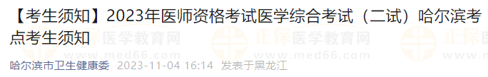 黑龍江哈爾濱考點(diǎn)2023年中醫(yī)執(zhí)業(yè)醫(yī)師醫(yī)學(xué)綜合考試(二試)考生須知
