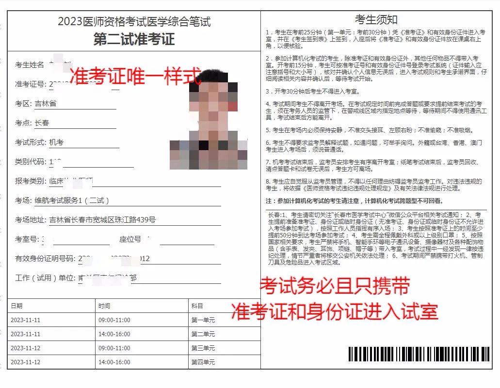 2023年國家醫(yī)師資格考試“一年兩試”第二試考試時間為11月11日—11月12日,吉林考區(qū)長春考點醫(yī)師資格考試“一年兩試”第二試準考證自11月4日起開放打印,請關注“國家醫(yī)學考試網”自行打印準考證。