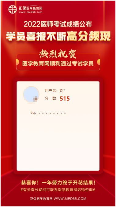 2022醫(yī)師資格考試成績(jī)終于塵埃落定,你通過(guò)了嗎?網(wǎng)校自成績(jī)公布后收到了來(lái)自全國(guó)各地學(xué)員的好評(píng)!以下是一位中醫(yī)執(zhí)業(yè)醫(yī)師筆試考了515分學(xué)員,興奮極了!網(wǎng)友:隔屏都感受到喜悅!