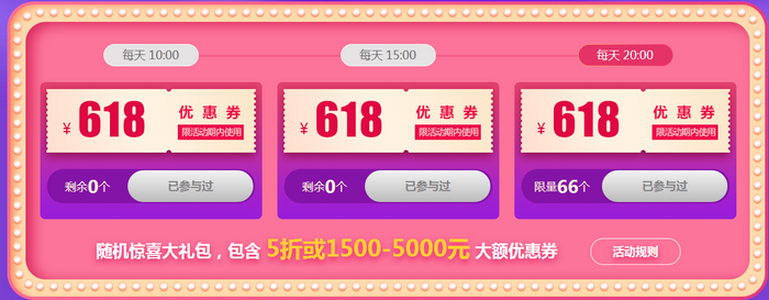1、搶券:一定要在規(guī)定的時間點前打開活動頁,搶券!