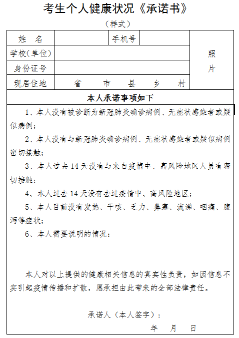 附件: 2020年黑龍江省考生個(gè)人健康狀況《承諾書(shū)》