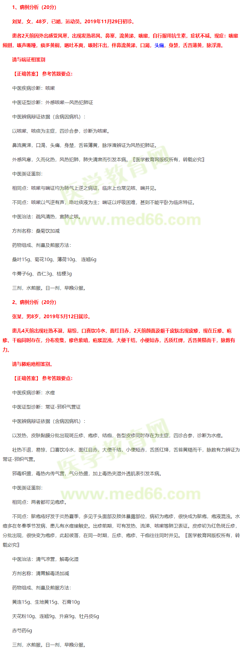 很多考生都是第一次參加中醫(yī)執(zhí)業(yè)醫(yī)師實(shí)踐技能考試,“知己知彼,百戰(zhàn)百勝”,為了讓考生更熟悉模擬試題,醫(yī)學(xué)教育網(wǎng)小編搜集整理“2021年中醫(yī)執(zhí)業(yè)醫(yī)師實(shí)踐技能模擬試題(二)第一站病案分析”,詳情如下: