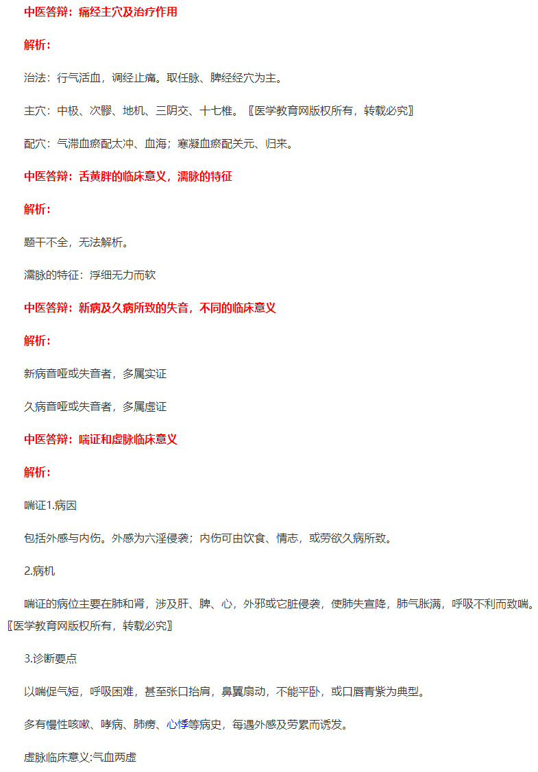 注:考試中中醫(yī)答辯只有一題