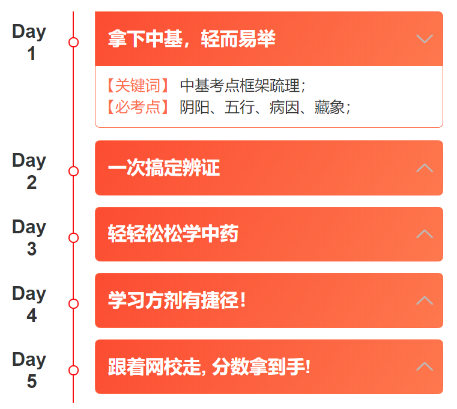 Day1-Day5網(wǎng)校講師劉楝、林遠將帶領大家拿下中基、中診、中藥、方劑四大科目歷年高頻考點,拒絕死記硬背,串聯(lián)考點體系,備考有妙招!