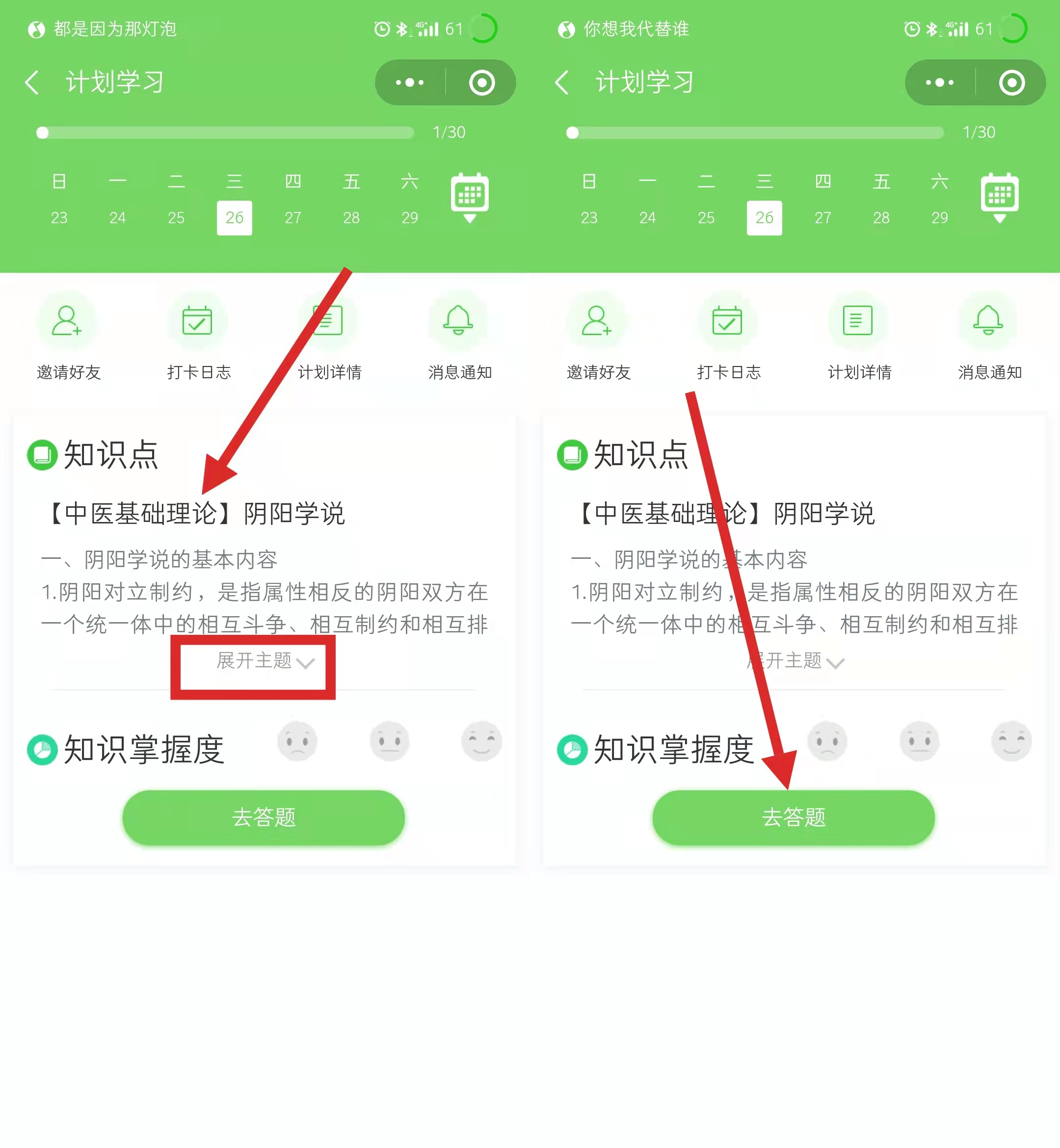 (3)查看測試結(jié)果+答案解析+分享今日打卡心情,提交完成打卡