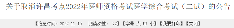 關(guān)于取消許昌考點2022年中醫(yī)執(zhí)業(yè)醫(yī)師資格考試醫(yī)學(xué)綜合考試(二試)的公告