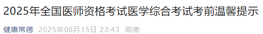 根據(jù)國(guó)家醫(yī)學(xué)考試中心的統(tǒng)一安排,2025年全國(guó)醫(yī)師資格考試醫(yī)學(xué)綜合筆試將于8月22日-24日舉行。考試時(shí)間將近,為確保各位考生能順利參加考試,現(xiàn)將有關(guān)事項(xiàng)提示如下: