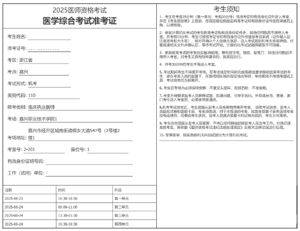 【匯總】全國2025年醫(yī)師資格考試醫(yī)學綜合筆試準考證打印時間