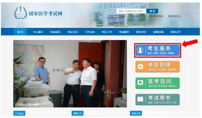 第一步:進(jìn)入國(guó)家醫(yī)學(xué)考試網(wǎng)點(diǎn)擊“考生服務(wù)”。