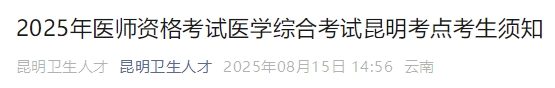云南昆明2025年中醫(yī)執(zhí)業(yè)醫(yī)師綜合筆試考生須知已出,速看!