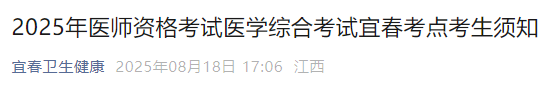 江西宜春2025年中醫(yī)執(zhí)業(yè)醫(yī)師綜合筆試考生速看考場安排!以下為宜春考點官方通知,請相關(guān)考生按時打印準考證,提前確認好考場安排及考生須知!