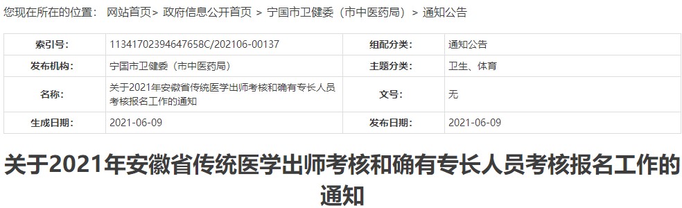 關(guān)于2021年安徽省傳統(tǒng)醫(yī)學出師考核和確有專長人員考核工作的通知