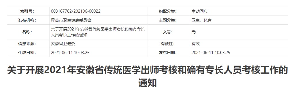 關(guān)于開展2021年安徽省傳統(tǒng)醫(yī)學出師考核和確有專長人員考核工作的通知