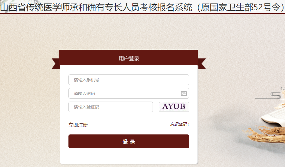(1)網(wǎng)上報(bào)名。申請(qǐng)者登錄山西省中醫(yī)藥數(shù)據(jù)中心(IP地址是http://59.49.101.120:12000域名http://www.sxszyysjglzx.cn:12000)進(jìn)入傳統(tǒng)醫(yī)學(xué)師承和確有專長(zhǎng)人員考核報(bào)名入口,注冊(cè)后填報(bào)個(gè)人信息。